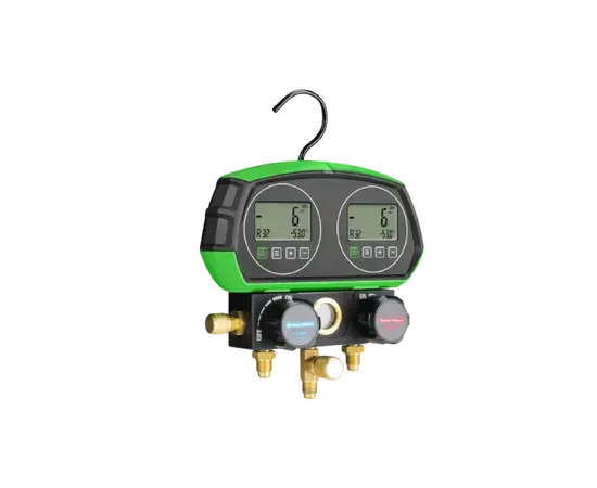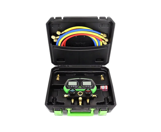 Манометрический коллектор Ballu Super Stars ST-B268Dпредназначен для заправки, технического обслуживания и пуско-наладочных работ систем кондиционирования, холодильных системах и тепловых насосах.Super Stars ST-B268Dвыполнен в виде моноблока с большим, легко читаемым дисплеем с широкими углами обзора и яркой подсветкой.В памятьэлектронного манометрического коллектора Super Stars ST-B268Dзанесены параметры 90 фреонов. Прибор производит измерения давления на стороне нагнетания и всасывания, показывает температуру конденсации и испарения, измеряет температуру трубопроводов на стороне нагнетания и всасывания, производит вычисление степени перегрева и переохлаждения.В комплекте:3 заправочных шланга 1.5м длиной, до 55 бар 1/4"х 1/4";2 адаптера AD89 1/4"х 5/16;Батарейка;Кейс