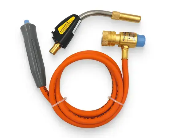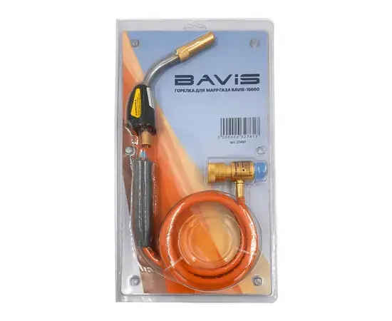 Горелка для MAPP газа BAVIS-1S660 с пьезоподжигом, шлангом 1,5 м., встроенным редуктором давления, функцией антивспышки. Съемное сопло выполнено из латуни с внутренними лепестками для повышения тепловой мощности. Тип пламени: Вихревое.Преимущества и характеристики:Точная регулировка мощности пламени.Пайка твердыми и мягкими припоями.Быстрое отсоединение и легкость смены сопла.Предназначена для работы с пропаном и МАРР газом.Тепловая мощность: 3400 Вт.Мощность пламени: 11600 BTU/H.Тип топлива: МАРР-газ / МАРР-про.Подходит для работы в ограниченном пространстве.Безопасна и надежна.