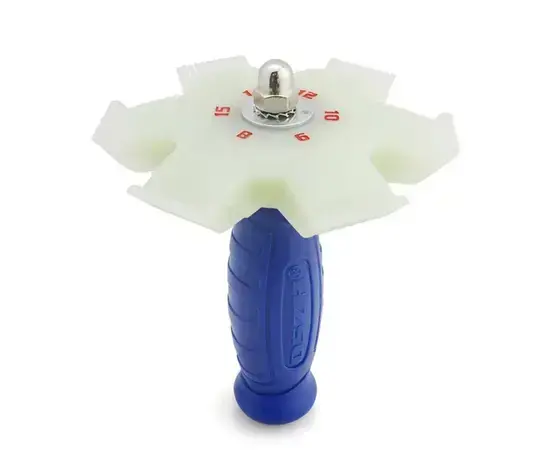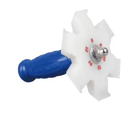 Гребенка для правки ламелей CT-351 Предназначена для выправления замявшихся рёбер теплообменников.Гребёнка CT-351 изготовлена из прочного пластика, рабочая часть имеет вид шестерёнки с шестью зубьями, где каждый "зуб" представляет собой гребёнку с различным шагом между прорезями для оребрения теплообменников. Рабочая часть закреплена на съёмной пластиковой ручке.Универсальная гребёнка CT-351 позволяет править замявшиеся рёбра теплообменников имеющих следующие шаги оребрения – 8 рёбер на дюйм, 9 рёбер на дюйм, 10 рёбер на дюйм, 12 рёбер на дюйм, 14 рёбер на дюйм, 15 рёбер на дюйм.