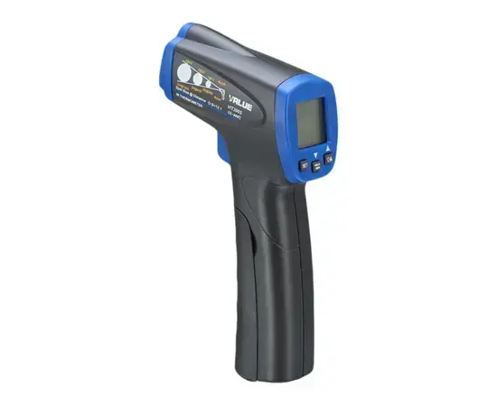 Инфракрасный термометр Value VIT-300S– новейший, максимально точный, сертифицированный прибор от Value - мирового производителя современных приборов и оборудования для систем охлаждения. Инструмент экономически эффективен, занимает мало места, имеет прочный корпус, что является гарантией его длительного срока использования. Термометр серии VIT легко и быстро определит температуру в диапазоне от -32°C до 400°C. Для удобства использования продуманы дисплей с подсветкой, блокировка клавиш и автоотключение.