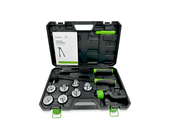 Труборасширитель рычажный Ballu Super Stars ST-100Aявляется специализированным инструментом, предназначенным для расширения медных, алюминиевых и латунных труб.В комплекте насадки для расширения труб диаметром:3/8", 1/2", 5/8", 3/4", 7/8", 1", 1 1/8".Главная задача этого инструмента — создать необходимую глубину раструба и зазора между трубами, что обеспечивает надежное и качественное соединение. Обеспечивает качественный монтаж трубок без использования фитингов в установках кондиционирования воздуха и холодильных системах, подготавливая трубы к пайке.При выборе труборасширителя важно учитывать диаметр трубы, для которой он будет использоваться.Комплектация:Труборасширитель ST-100A;Сменные головки;Труборез ST-G532;Риммер CT-207;Кейс.Особенности труборасширителя:расширитель экономичен и не нуждается в источнике питания для выполнения работ;нескользящие ручки-держатели для удобной работы;быстрое расширение трубок;компоненты термически обработаны для долгого срока эксплуатации;позволяет сэкономить до 50% средств при пайке за счёт отсутствия нужды в фитингах.Труборезприспособление для работы с металлическими трубами. Применяется для резки тонкостенных стальных труб. Оснащен специальным механизмом с регулируемым диапазоном обрезки, что позволяет работать с трубами разных диаметров.Риммерслужит для снятия фаски (заусенцев) внутри и снаружи медных и алюминиевых труб