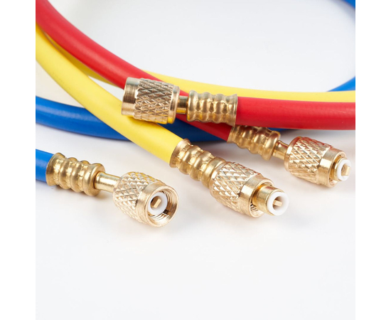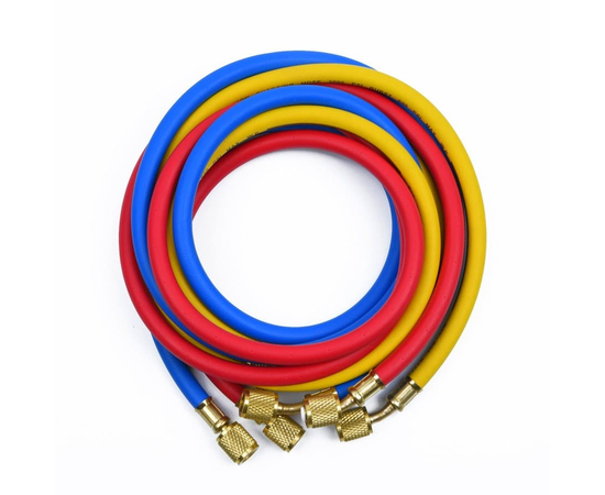 Комплект состоящий из 3-х заправочных шлангов по 1.5 м для заправки и вакуумирования кондиционеров. Шланги подсоединяются к вакуумным насосам, баллонам, манометрическим коллекторам.Не требуют переходника для работы с фреоном R410A.Давление до 55 Bar.В комплекте:3 шланга, присоединительные размеры (1/4" SAE x 5/16" SAE) под R-410AШланги зарядные, предназначены для соединения манометрической станции с баллоном фреона или вакуумным насосом и холодильным оборудованием. В качестве уплотнения используются фторопластовые или резиновые манжеты.